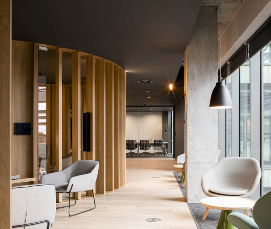 30,000平方英尺的新辦公室位于都柏林市中心的One Park Place大廈,ODOS設計團隊以寧靜的暗色調和蜿蜒流動的曲線打造室內空間。設計概念源于都柏林的城市道路肌理。與美國規(guī)則的道路規(guī)劃相比,都柏林的城市道路則呈現(xiàn)出獨特的流動性,這成為規(guī)劃本案的核心概念,也由此讓室內空間與城市文脈之間建立起了關聯(lián)。