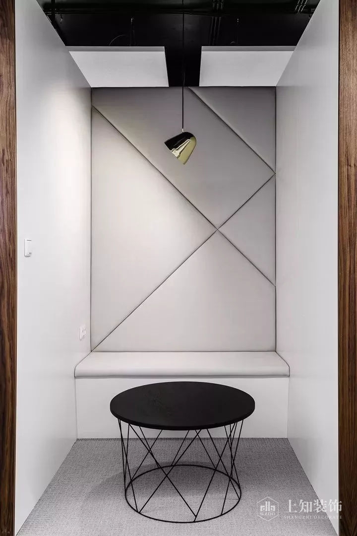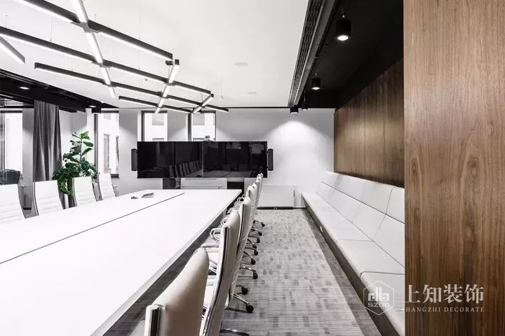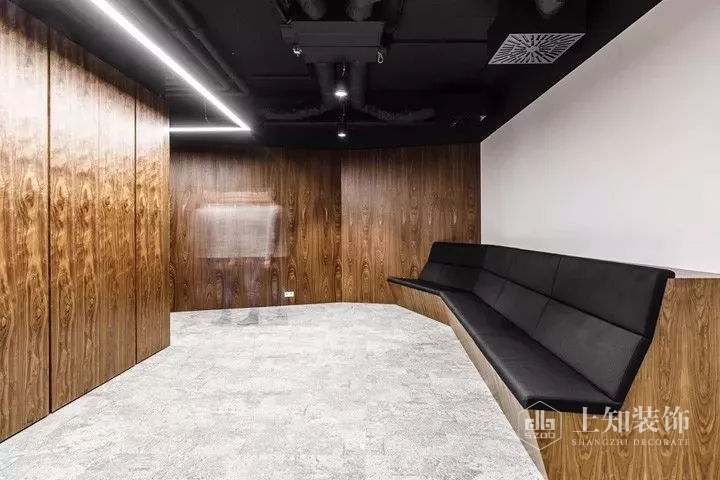 本案設計宗旨是為員工創建一個舒適友好的工作氛圍。設計以logo的黑白色轉化為空間的主色調,經典的黑白對比加入優雅的灰色和溫暖的胡桃木飾面,豐富空間視覺的同時營造優雅精致的空間氛圍。